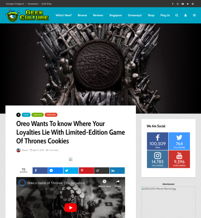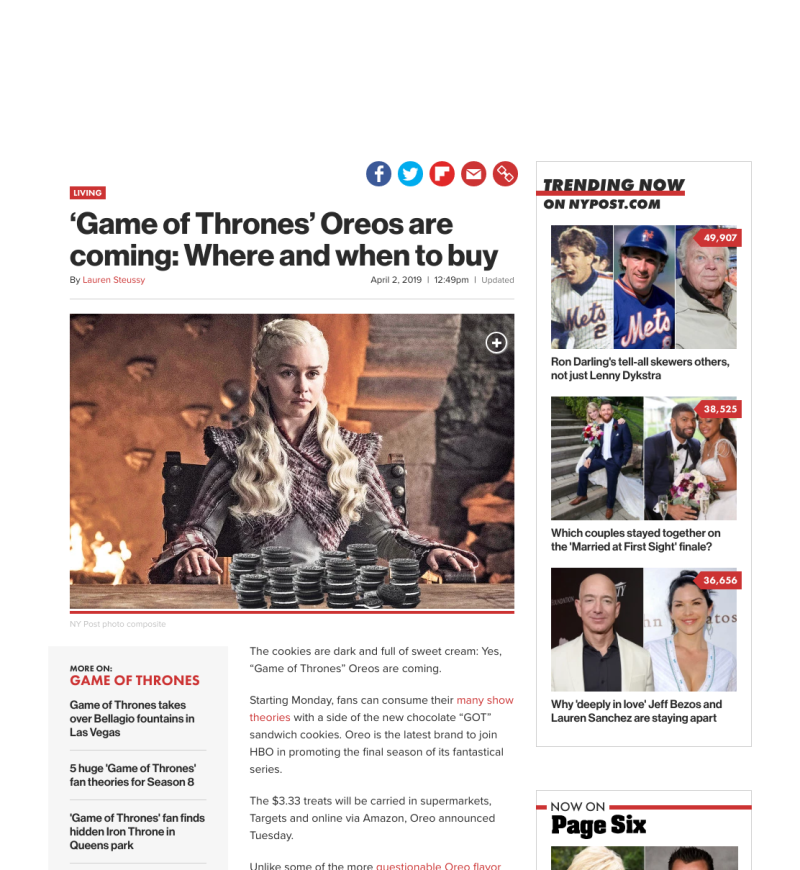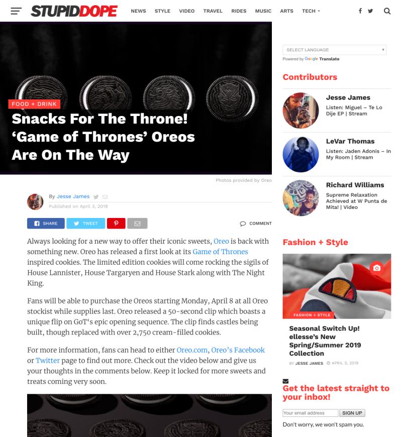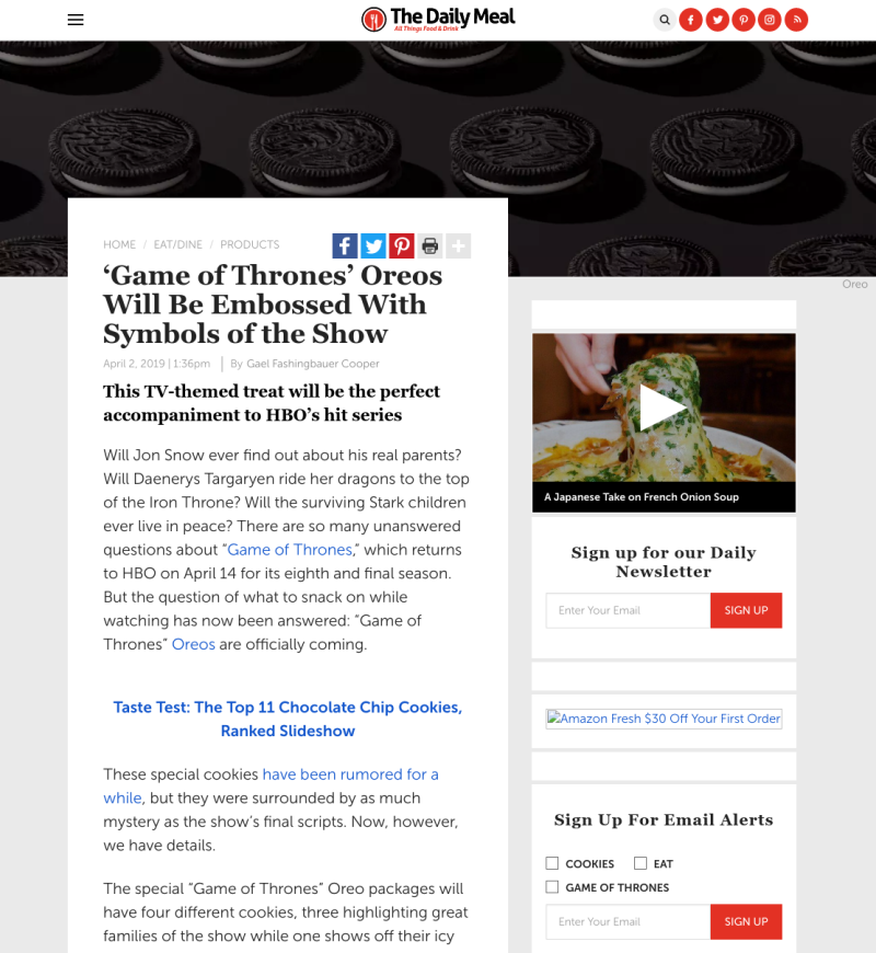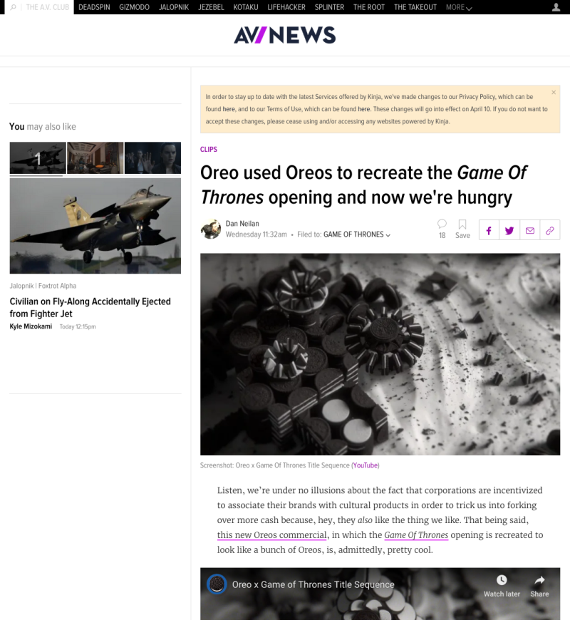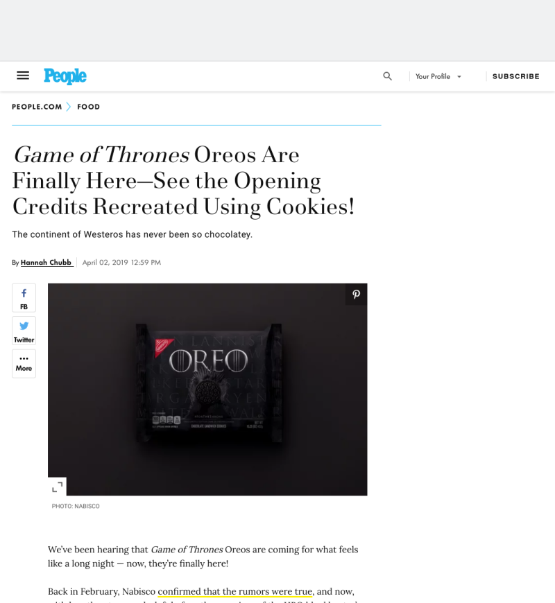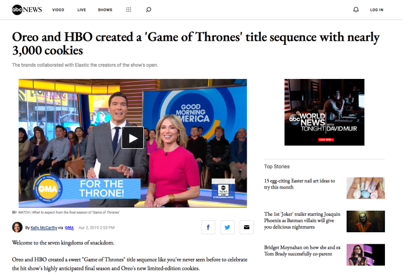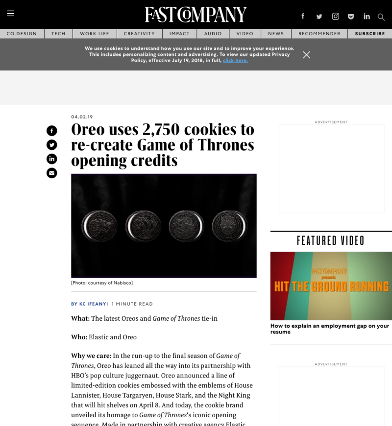 As part of the #ForTheThrone campaign HBO partnered with Oreo to bring to life limited edition Oreo cookies, packaging, and launch film commemorating the final season of HBO's Game of Thrones.
