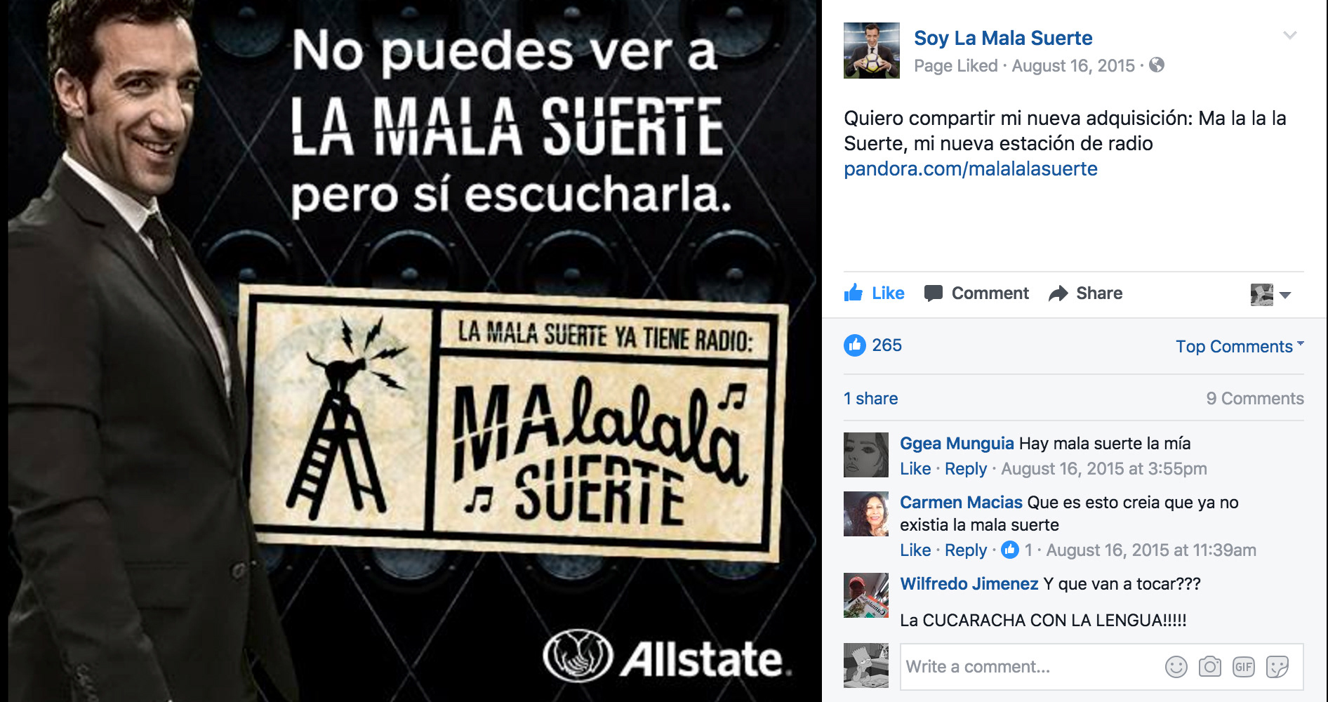 Integrated national campaign for Allstate Insurance featuring La Mala Suerte (Bad Luck).